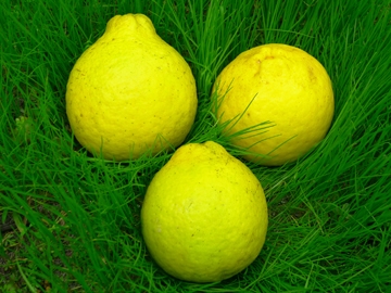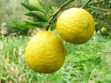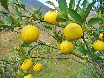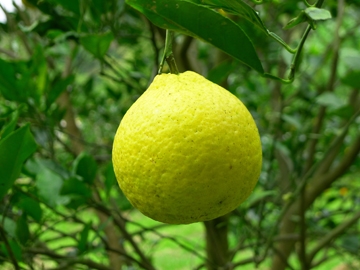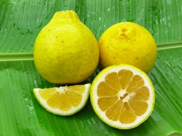 三寶柑(Sanbokan)發源於日本江戶時代的和歌山城內,現在仍是和歌山縣的特產之一,果實頂部凸起,果蒂凹陷,果皮果肉皆為鮮黃色,重200~250公克,剝皮時散發檸檬香氣,它的果肉風味真的非常佳美,金黃飽滿酸甜適中,而且香味宜人,但是瓣膜厚韌嚼不易化,因此建議切片如柳丁的吃法為佳,瓣膜可以連皮丟棄僅食用果肉,甜度約13Brix,整體風味上乘,3月開花,次年1~2月採收,中南部因高溫所結果實碩大果皮略顯粗糙,北部特別是山區所產果實外觀圓整皮面光滑,轉色後粒粒金黃眩目耀眼,耐寒性優異,中海拔山區結果情況亦佳。 |