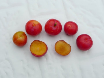 珍珠李是流傳在台灣中南部一個年代久遠的品種,也是許多長者孩童時期少不了的美好回憶,每年一次端午前的收成,在那物資不甚豐盛的年代彌足珍貴,當下進口洋李大行其道,逐漸消逝的舊日風味如今更顯價值,珍珠李的外觀紅帶青斑,果重20~28克,果徑2~3公分,比桃接李略大,糖度9~11度,8分熟果入口酸甘,完熟果酸甜,花期2月中,果期5月初,需冷量低,中部東勢、后里都可結果,豐產性強,果實糖漬、鮮食皆可。