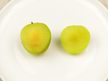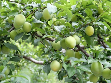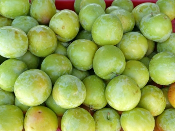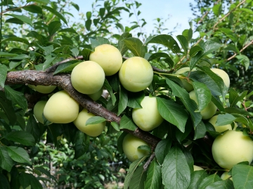 黃金李是非常傑出的黃色大果李子,皮肉皆為黃色,小果40~60克,多數60~80克,疏果可至110克,表面微佈果粉,果實初熟黃綠色,為了貯運必須在此時採下,看起來生脆的果實已經可以入口,香酸微甜的風味吃起來很清爽,室溫貯放3~4日後熟,果皮轉為黃色,果肉雖已軟甜但是果皮始終酸酸的,這種搭配是黃金李的特點,李子給人的印象就是酸,軟熟失了酸味似乎就不像李子,黃金李沒有這樣的情況,皮酸肉甜的組合市場接受度很高,平地2月上中旬開花,5~6月採收,中高海拔山區推延一個多月,產期6月下旬至8月上旬,黃金李在果重及風味兩個指標上已達到進口李的水準,果粒大而勻整,它的起源眾說紛紜,可能是農戶以進口李的種子實生選育。 |