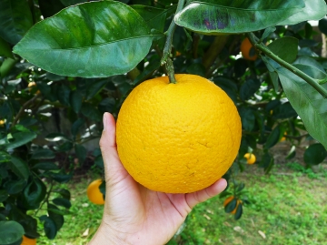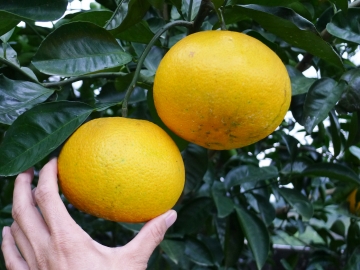 「八朔」意指農曆八月初一,江戶時代廣島縣發現的柑橘品種,它被認為是柑橘與柚的雜交子代,源於柚類遺傳,八朔柑果粒碩大,汁多肉厚,甜帶微酸,食後口內的回甘餘韻正是八朔受到歡迎的特點,據說過去日人於8月1日前後食用,實際上此時外觀仍綠個頭尚小,並非最佳賞味。 |